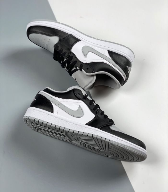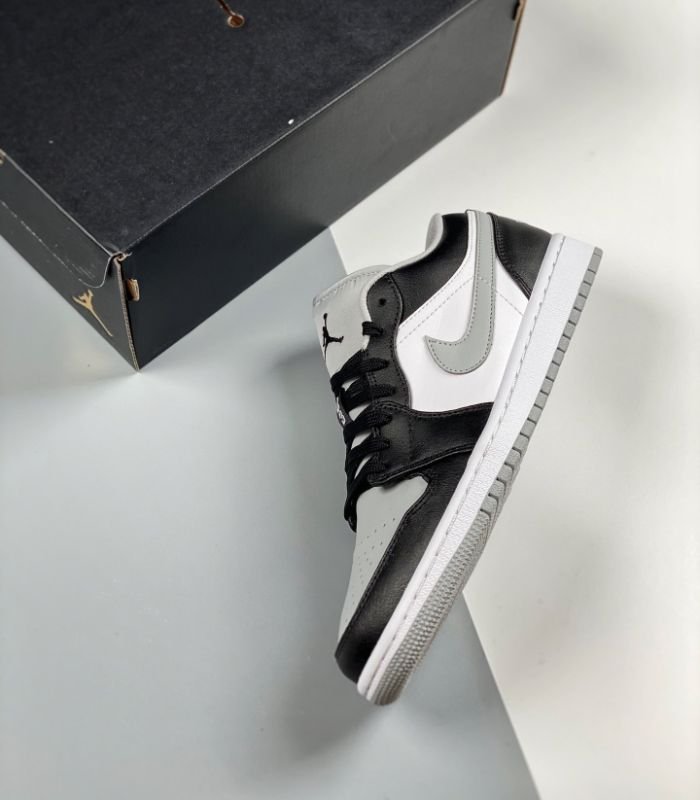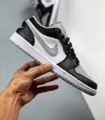 Following Nike’s release of the Bred Toe, Air Jordan released the Shadow Toe colorway, as seen in this Air Jordan 1 Low Shadow. The Air Jordan 1 Low Shadow features a white leather base, with the mudguard, tongue, lace overlays and Swoosh all in black. Gray accents are present on the toe, heel counter and ankle collar, with a gray Jumpman on the tongue and the Air Jordan Wings logo stitched in black on the heel. Rounding out the Air Jordan 1 Low Shadow is a white midsole and gray outsole. The Air Jordan 1 Low Shadow reps released in January 2020. The Air Jordan 1 Low certainly had a difficult time coming to market, to say the least, though the collaboration with Eric Koston and Travis Scott certainly did the heavy lifting to pick up the pace. Keeping with tradition plans, the modified silhouette has received a few colored toes in recent months, and with the Bred, Shattered Backboard and Royal out of the way, it’s on to the famous OG Shadow. The execution is more of a borrowing than an outright copy and still quite different overall: the neutral hue finds a place here in various places, embellishing the toe, tongue and Swoosh, while the base leather and overlay inserts opt for white and black respectively. The materials also deviate slightly from the norm. While much of the construction favors the usual, the innermost elements permanently feature a subtle perforation that essentially sets it even further apart from its inspirations, an effect shared by the wing insignia on the heel and the lone Jumpman on the tongue. Take a detailed look here and catch up on the official release,