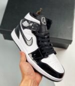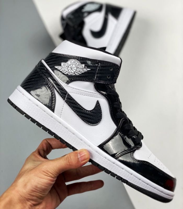 The Air Jordan 1 Mid Carbon Fiber was released alongside a pair of Nike Dunks, Air Force 1s, and Air Foamposite Ones to commemorate the 2021 NBA All-Star Game. Like every pair in the All-Star Pack, the Air Jordan 1 Mid Carbon Fiber reps feature a black patent leather upper. Under the light, the patent leather upper also reveals a pattern reminiscent of a carbon fiber coating, similar to those on the outsoles of the Jordan 11. White leather underlays and a white Wings logo on the ankle contrast the glossy material. Finally, a Jumpman tongue tag is sewn onto a nylon tongue. The Air Jordan 1 Mid Carbon Fiber was released in March 2021. Underfoot in the Air Jordan 11, carbon fiber has arguably become one of the most notable materials used in Jordan’s flagship line. And as a token of affection, the brand is bringing it into even greater focus on the 2021 Air Jordan 1 Mid “Carbon Fiber.” Introduced in kids’ sizes just a few days ago, the pair is rumored to make a rather eventful debut at next year’s All-Star Weekend-not long after the NBA season’s official restart date in December. In terms of construction, the overlays will only partially shed the title material, applying it only to the heel counter and ankle flap. Up front, the toe cap and eyepiece are made of patent leather, which has a similar, but not identical, sheen to the aforementioned material. Smooth white leather then forms a simple color palette underneath, rounded out by matching wings, Jumpman branding, and midsoles.